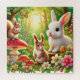 Illustration colorée d'animaux de la forêt, y compris des lapins et des écureuils, dans un cadre boisé dynamique avec des fleurs en fleurs et des champignons rouges, capturant la magie de la nature, la paix et l'enchantement.