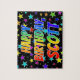 Ce design de puzzle passionnant et animé sur le thème de l'anniversaire présente le message "HAPPY BANTHDAY, SCOTT" avec des personnages ayant un motif dégradé coloré inspiré du spectre arc-en-ciel, ainsi qu'un motif arrière - plan aux formes étoiles vibrantes. Un puzzle vibrant comme celui-ci pourrait être utilisé pour envoyer des voeux d'anniversaire à quelqu'un nommé Scott. [~Z0000468]