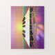 Jigsaw puzzle pour les mélomanes avec mon image surréaliste de touches de piano flottant sur l'eau avec un soleil et des tons rose et violet.