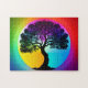 Une silhouette d'arbre noir entourée d'une atmosphère du spectre arc-en-ciel. Les ombres d'un arbre ancien, foncé comme minuit, dansent à travers, une silhouette née d'une symphonie de lumière et d'obscurité. Une merveille qui murmure des contes d'enchantement.