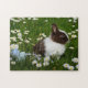 Puzzle Small Brown and White Bunny in Flowers