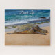 Une photo d'une scène paisible d'une tortue de mer verte hawaïenne s'est répandue sur la plage de sable, vivant la "Beach Life" à Laniakea Beach, O'ahu.