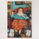 L'image représente une femme joyeuse, plus grande, une femme chatte sans enfant, assise confortablement dans un fauteuil confortable, tenant un verre de vin rouge. Elle est entourée d'une multitude de chats colorés et expressifs, dont beaucoup sont assis sur ses genoux, à ses côtés, ou assis à proximité. La scène dégage un sentiment de chaleur et de détente, avec des couleurs vives, des motifs ludiques et une atmosphère animée, comme la femme sourit avec contentement, en appréciant la compagnie de ses compagnons de félins. Le cadre fantaisiste et joyeux ajoute du charme à cette illustration excentrique et réconfortante.