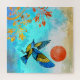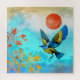 Ce magnifique design représente un oiseau bleu et or qui atterrit sur un arbre doré avec un ciel de couleurs bleues et un soleil orange audacieux.