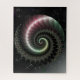 A spiral fractal design on a starry sky background. The fractal is based on a Julia formula with transformations, orbit traps et several equation tweaks.