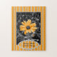 Spring Flash African Daises are beautiful flowers. This custom puzzle template is adorned with a gray framed desaturated close up photograph leaving the color in the open ivory daisy blossom and closed bud to stand out over an orange, ivory and gray vertical striped background. The framed striped oval sets off the text. Fill in the template field with your words, name or initials and/or customize to select a different font style, size and color.