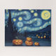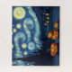 Ce puzzle propose une pièce amusante sur la peinture Starry Night de Van Gogh, avec une touche d'Halloween. C'est une adaptation amusante d'Halloween à une célèbre peinture.
