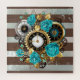 Puzzle Steampunk Clock and Turquoise Roses on Striped