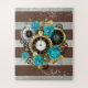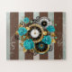 Puzzle Steampunk Clock and Turquoise Roses on Striped
