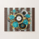 Puzzle Steampunk Clock and Turquoise Roses on Striped
