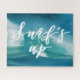 NewParkLane - puzzle, avec une photo des ressacs bleus de bel aqua, avec la citation haute du "surf" dans la typographie de manuscrit d'amusement.