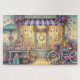 Welcome to Sweet Summer Finds, the sunniest little shop by the sea — captured in this heartwarming jigsaw puzzle that feels like a summer memory in bloom. This enchanting storefront glows with golden light and is overflowing with cheerful detail: colorful jars of preserves, fresh-picked flowers, and baskets of handmade treasures. A pastel-striped awning shades the entrance, where a floral wreath hangs proudly on a welcoming door. The scene is complete with a vintage pink bicycle, baskets brimming with blooms, a curious kitten nestled in yarn, and coastal breezes dancing with strings of fluttering bunting. The sparkling blue ocean shimmers just beyond the wooden boardwalk, reminding you that the sweetest finds are often discovered in the most magical of moments. Perfect for summer lovers, coastal dreamers, and anyone who finds joy in bright colors, nostalgic charm, and seaside whimsy.