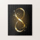 Or, bijoux symbole infini avec étoiles or sur un arrière - plan noir. Design avec étoile d'or.