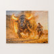 Puzzle Taurus Zodiac with Warrior Leading a Fiery Celesti