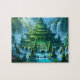 Jigsaw puzzle of a Chinese temple castle made entirely of magical green jade. Clean blue waters encircle the structure while silent jade sentinels flank the way to the castle's crystal gates. Legend has it that within the teeming jungles of the country lay hidden the castle of the benevolent, yet enigmatic, Empress Liáo Yù Yù and her mystical throne of glowing jade. Adventurers and treasure seekers, dignitaries and holy men, beggars and businessmen, had all come from the many corners of the world trying their luck to find this mythical place, but only the truly worthy were successful. Their quest was to sit on the glowing throne of jade that once belonged to the Empress, for it is said that it cured you of all your most painful and deathly ailments. To some, the throne even granted eternal life, but, woe to those whose intentions were selfish, for just as they sat on the ancient seat of power, they were never seen again... This artwork was created with ImageFX and upscaled with Leonardo.ai. Additional editing was done offline by me.