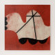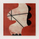 Un abstrait simple en noir, blanc et rouge orange. Une grande forme incurvée passe de haut en bas sur un arrière - plan rouge-orange. Les lignes droites se croisent sur la grande forme tandis que 3 accents noirs ornent le côté droit, puis se répètent au bas.