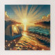 Jolie plage camping thème puzzle vintage avec une illustration d'une tente sur une plage au lever du soleil. Illustration Ai réalisée dans un art de style comique hyper réaliste.