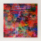 Des couleurs vives et des motifs complexes se mêlent, créant une scène abstraite remplie de formes tourbillonnantes et de motifs floraux. L'interaction de tons chauds et cool, ainsi que de couches texturées, ajoute profondeur et mouvement.