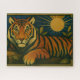 Célébrez la tranquillité de la nature avec cette impressionnante empreinte d'art animalier avec un tigre stylisé allongé sur une bille sous un soleil radiant. Rendu dans des lignes géométriques audacieuses et une riche palette d’orange, d’or et de bleu profond, le regard calme du tigre et sa posture pochée évoquent des thèmes de force, de tranquillité et de présence intemporelle. Entourée de feuilles verdoyants et encadrée de motifs décoratifs, la composition allie élégance naturelle et design symbolique. Parfait pour les intérieurs éclectiques, les décors d'inspiration nature ou comme un cadeau significatif pour les amoureux des animaux et les amateurs d'art, cette pièce apporte chaleur, équilibre et beauté audacieuse à tout espace.