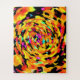 Cet abstrait audacieux tourbillonne avec des couleurs de tigre orange, jaune et noir avec des touches de vert citron, rose et turquoise.