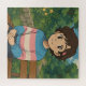 Cute anime transgender person in a trans sweater sitting outside on a bench. A sweet puzzle to help someone feel like they matter and are seen.