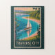 Conception de déplacement vectoriel rétro de Traverse City. Traverse City, Michigan, est une charmante destination au bord du lac connue comme la capitale mondiale des cerisiers, offrant aux visiteurs des vignobles, des plages de sable du lac Michigan et des paysages pittoresques.