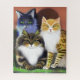 Puzzle dans un portrait de trois chats avec une attitude sérieuse - ces gars veulent dire affaires - un bleu russe, un persan marron et blanc, et un tabby rayé de tigre orange et blanc