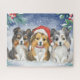 Cet adorable puzzle présente une aquarelle représentant trois étagères assises dans la neige. Les étagères au milieu portent le casquette Père Noël