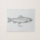 Un simple puzzle avec une illustration de truite et un message texte ci-dessous pour un cadeau d'anniversaire à un pêcheur, un guide de pêche, un amoureux du poisson, etc.