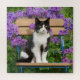 Puzzle Tuxedo cat sitting on a garchair with flowers