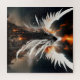 Une femme ange blanche domine un monde détruit. Elle est la seule qui reste debout dans un monde ruiné par la guerre et la dévastation. Elle est un symbole d'espoir et de courage face au désastre. Elle est grande et fière, malgré la destruction autour d'elle. Sa simple présence rappelle qu'il y a encore beauté et bonté dans ce monde, même au milieu d'une grande destruction.