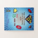 Une invitation d'anniversaire en forme de puzzle. Carte d'anniversaire pour les enfants. Thème : Superhero.