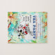 Invitation de 8" x 10" à puzzle fantaisiste d'une Alice vintage au pays des merveilles image du lapin blanc en tenue de régale sur un arrière - plan Wonderland coloré. Voir l'invitation de carte, enveloppe, confetti, sac de faveur, ballotin, étiquette de faveur carré, sacs cadeaux, étiquette, autocollant carré et papier d'emballage. Voir l'ensemble de la collection Wonderland Puzzle Invitation dans ACTIVITIES | Section Puzzles.