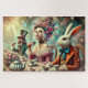 Discover a unique puzzle featuring a tea party in Wonderland with Alice, the Hatter and the White Rabbit. The colorful watercolor illustration and floral flourishes create a whimsical experience. Tailored for creative kids, girls, and fantasy enthusiasts, it offers both beauty and challenge. Every piece reveals charming animal and tea-time details. A magical, artistic puzzle adventure. Explore more fun whimsical designs in my Fantasy Art Puzzles Collection!