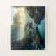 Velociraptor et T-Rex dans un ruisseau rocheux de la jungle préhistorique avec des arbres géants dans l'arrière - plan. Chaque puzzle vient dans une boîte cadeau. Il y a beaucoup de tailles et de nombre de pièces à choisir, à commencer par 30 pièces surdimensionnées (ce qui est bon pour les débutants ou les enfants pour résoudre plus facilement le puzzle) à un puzzle 20x30", qui contient un énorme 1014 pièces, bon pour les adultes et les casse-têtes experts.