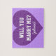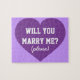 Veux-tu m'épouser ? puzzle à coeur mauve. Surprenez votre coeur ce jour de Saint Valentin (ou n'importe quel jour !) avec une proposition unique sous la forme d'un puzzle. Personnalisez avec le nom de votre petite amie ou de votre petit ami et customisez le style, la taille et la couleur de la police.