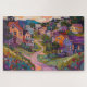 Cette route sinueuse traverse une petite ville au printemps. Les vieilles fermes colorées se trouvent le long de la route, et les fleurs fleurissent. Ce puzzle s'inspire des oeuvres d'Erin Hanson.