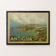Conception de l'Antigua dans le style de Vintage voyage comportant une scène tropicale d'île avec l'océan et le ciel bleu.
