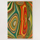 Cette image abstraite est un vibrant tourbillon de couleurs, avec un mélange de verts, d'oranges, de rouges, de jaunes et de bruns. Les motifs rappellent le mouvement fluide, fluide, créant un effet organique, presque psychédélique. L'image a une apparence dynamique et tourbillonnante, avec des formes concentriques ovales et des lignes ondulantes qui créent un sens de profondeur et de mouvement. Échelle de difficulté 1-10: 7