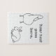 Un joli dessin de canard regardant lapin lapin lapin, avec un espace réservé modèle pour votre texte, est imprimé sur des puzzles personnalisés. Les puzzles sont un choix amusant pour Pâques, et les animaux et les lettres peuvent être colorés ! Merci pour faire du shopping à CherylsArt sur Zazzle.