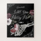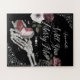 Rien ne hurle "I Boo !" comme une invitation à la fête gothique inspirée d'Halloween. Préparez-vous à une fête d'une beauté effroyable comme personne d'autre avec notre squelette 'Til Death Do Us Part' & thème gothique floral Halloween vous plairez à moi puzzle? Notre magnifique puzzle gothique mariage présente notre squelette d'aquarelle peint à la main tenant une boîte à anneau avec "Will You Merry Me?" avec des chauves-souris et des étoiles ainsi que nos belles fleurs gothiques et la bordure décorative. Toutes les illustrations sont nos oeuvres d'art originales dessinées à la main. Conception et dessin par Moodthology Papery