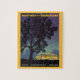 Illustration rétro d'une affiche de voyage européenne ou d'une étiquette de bagage d'Allemagne ; voyage ou vacances en Allemagne en bus. Un grand arbre ombrage le bus jaune la nuit. Texte : Mit Der Kraftpost Durch Deutschland ; Billig Zuverlassig Bequem. Avec Kraftpost à travers l'Allemagne ; Abordable Fiable Confortable.