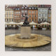 A photograph of the Warsaw Mermaid sculpture located in Old Town section of Warsaw, Poland