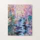 Relax and unwind with this beautiful jigsaw puzzle featuring an original impressionist painting by Cathy O. The artwork showcases a cascading waterfall in soft shades of blue, pink, and purple, creating a soothing scene that brings a touch of nature and tranquility to your leisure time. Perfect for art lovers, nature enthusiasts, or anyone who enjoys a peaceful puzzle challenge.