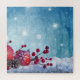 Ce design présente une belle image festive d'un paysage hivernal avec chute de neige et étoiles scintillant. Au premier plan, on trouve un assortiment de baies et de glands de saison.