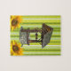 Puzzles Vert Jaune Bande Blanche, Tournesol Oiseau