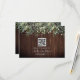 Mariage RSVP avec un design botanique à cordes de couleur verte au dessus de l'arrière - plan de bois avec texte blanc à l'avant et à l'arrière. Personnalisez le code QR.