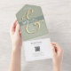 Simple, contemporain, minimal, unique sauge vert mariage invitation tout-en-un avec photo, code QR et élégante ampersand or tendance - monogramme avec initiales de mariée et mariée. Ajoutez votre URL et votre photo.