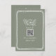 Mariage RSVP avec cadre blanc et illustration florale sur arrière - plan vert sage avec texte rouge sur l'avant et l'arrière. Personnalisez le texte et le code QR.