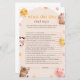 Cet adorable jeu de baby shower What Do the Dad Say présente un charmant thème animal de ferme avec de mignons illustrations d'une vache, lapin, poussin, cheval, cochon, entouré de fleurs joyeuses et d'un soleil souriant. Les couleurs pastel douces et le design fantaisiste créent une atmosphère chaleureuse et accueillante. Visitez notre boutique pour voir toute notre collection Brown d'animaux de ferme mignons.